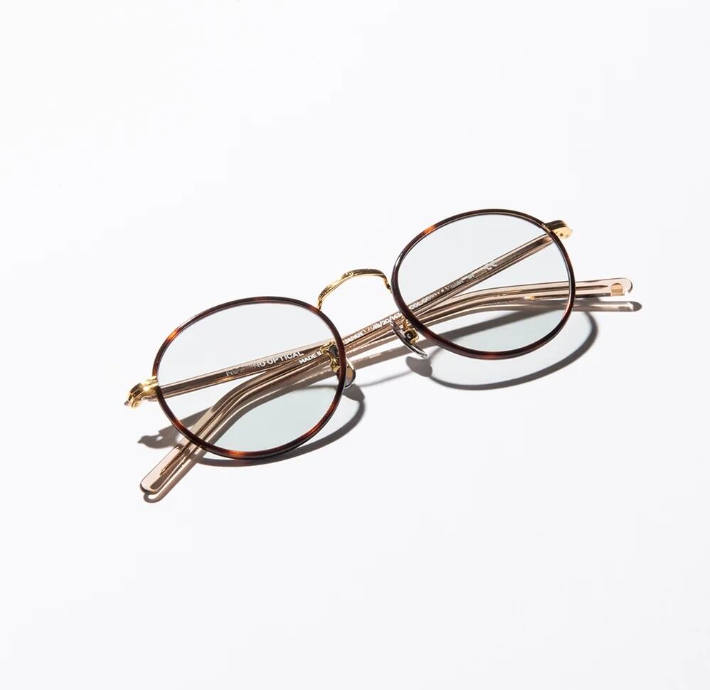 NOCHINO OPTICALブランドを象徴する2カーブレンズはフラットでもなく一般的なカーブタイプでもない美しい曲面で昔の手削りガラスレンズの名残りがあり、光り輝く表面感で高級感が漂う。