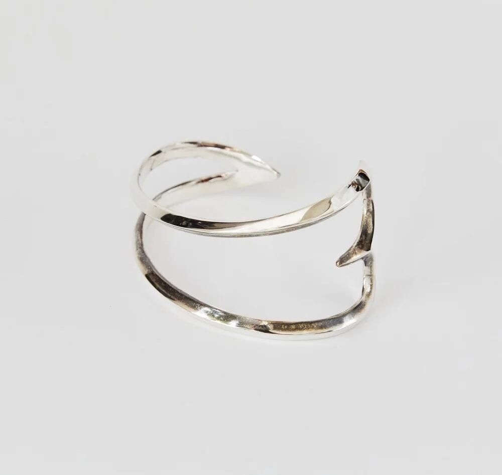 シルバーのみで形成されたシンプルさが、スタイルを選ばずコーディネートしていただける作品です。