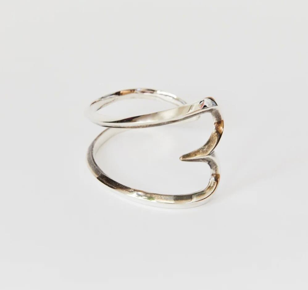 甘さのあるハート型を古いナバホジュエリーのような力強い作品に仕上げました。