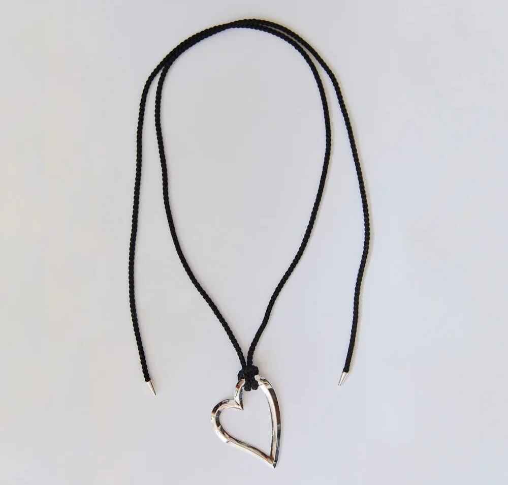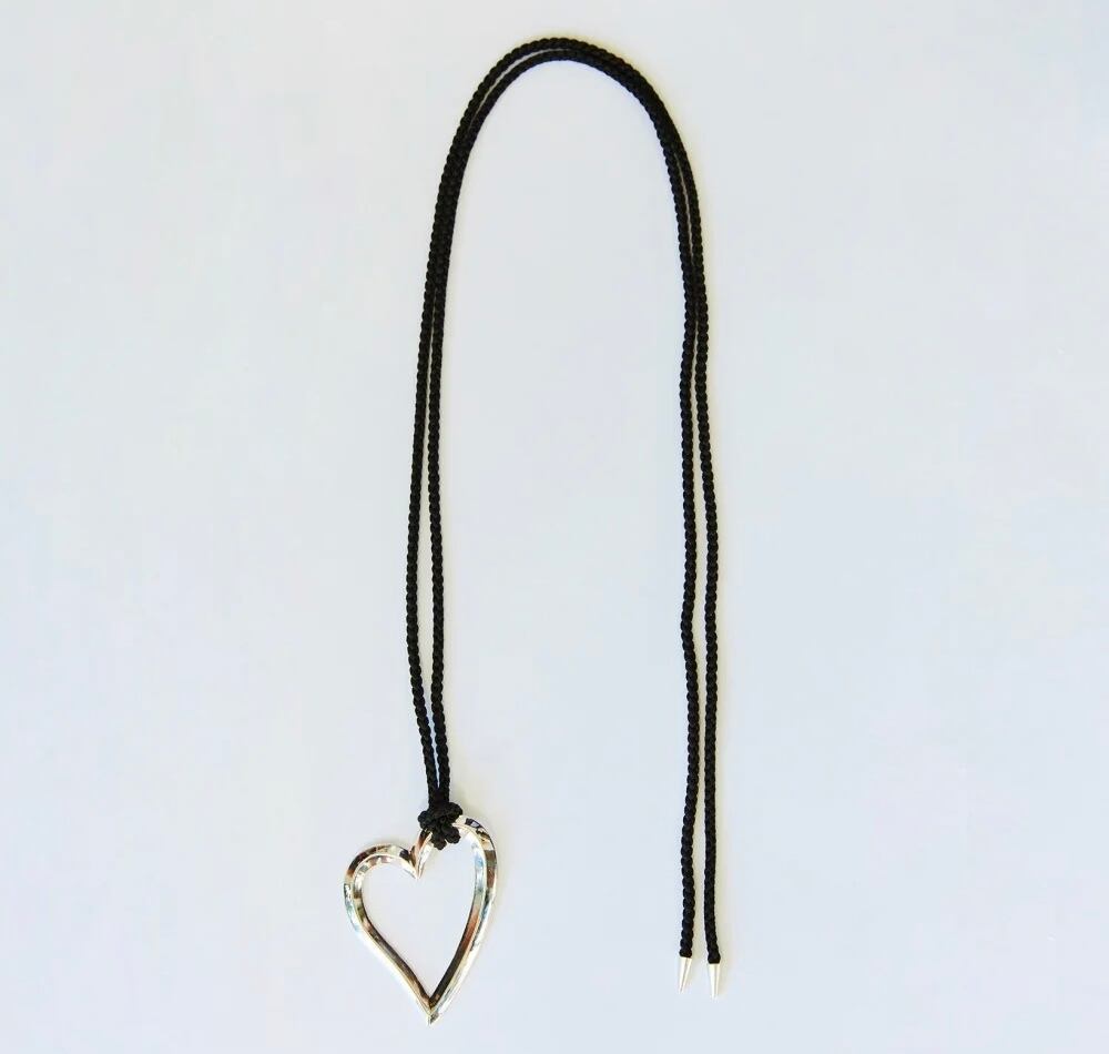 シルバーのハートトップと上品なシルクツイストコードで形成されたシンプルさが、幅広いコーディネートをしていただける作品です。