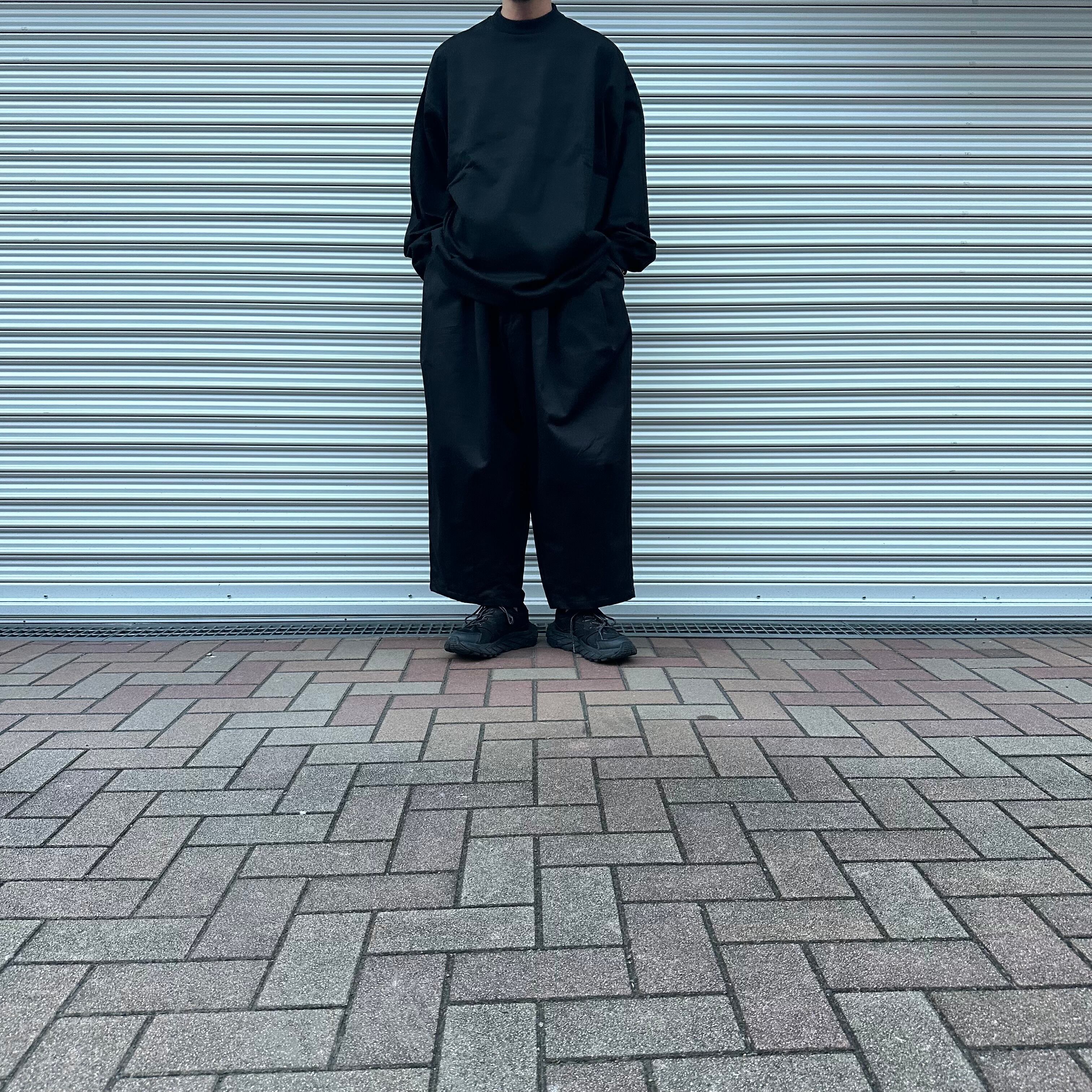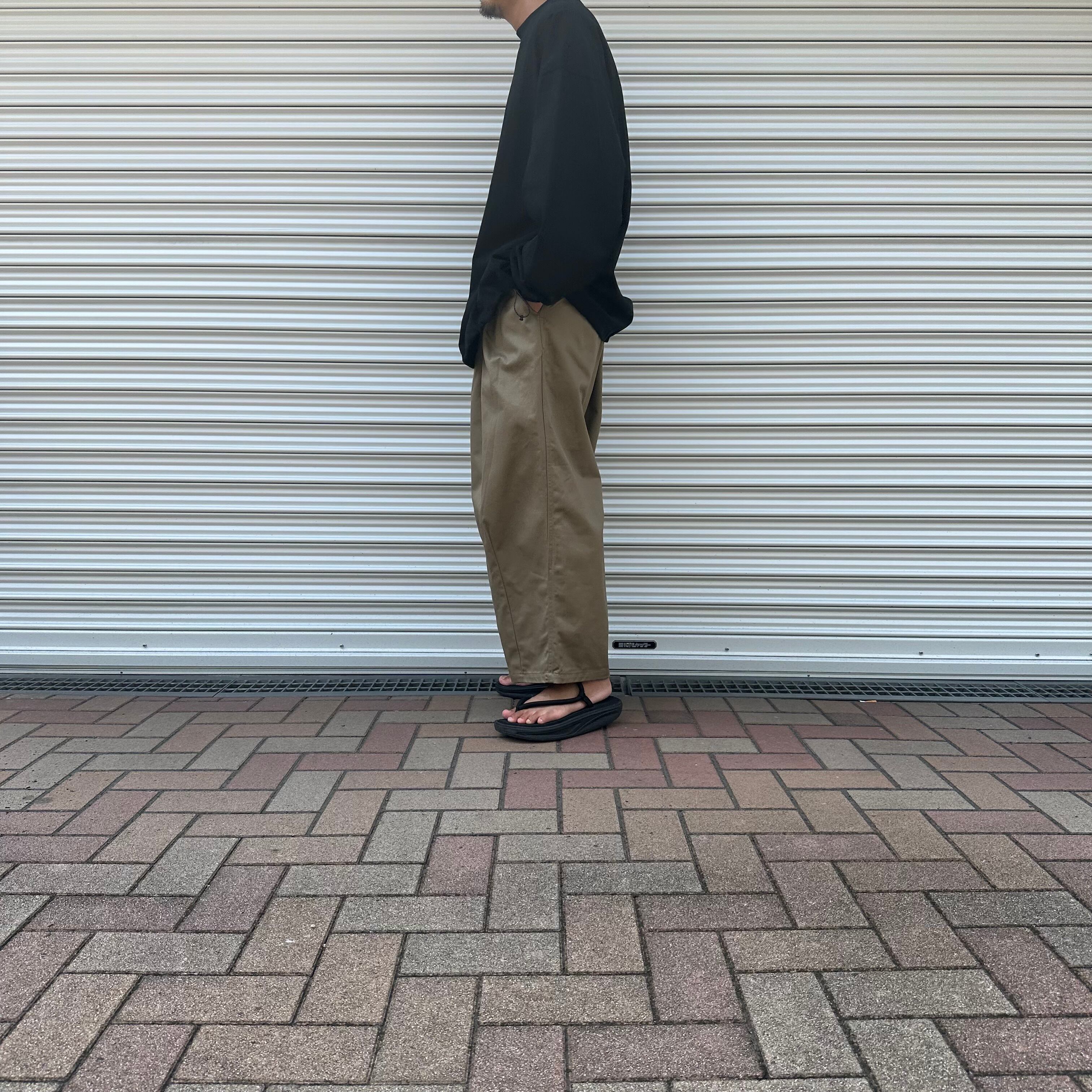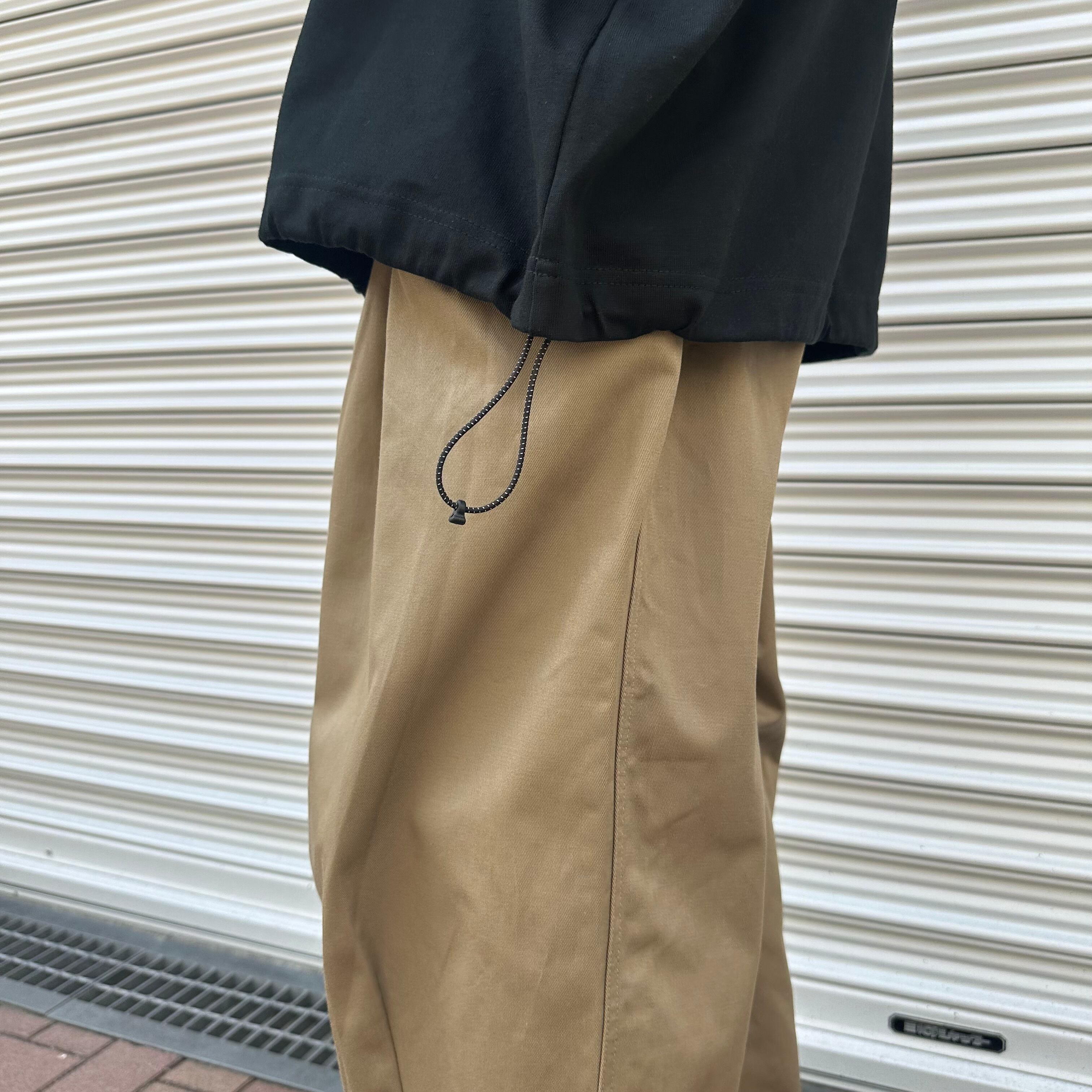 しっとりとした落ち感のあるヘビーウェイトなコットン天竺生地を使用し、裾のスピンドルを絞ることによってシルエットの変化が楽しめます。