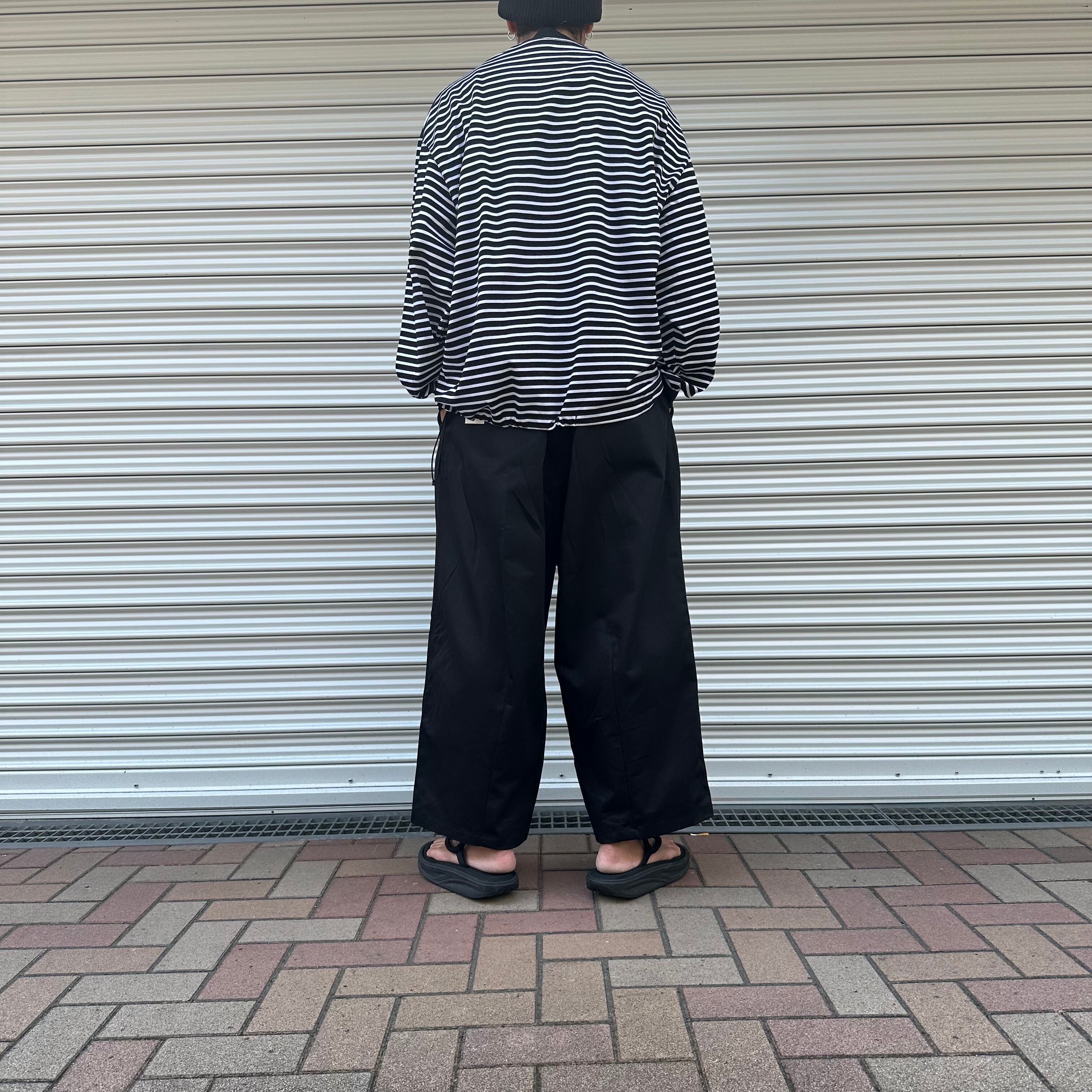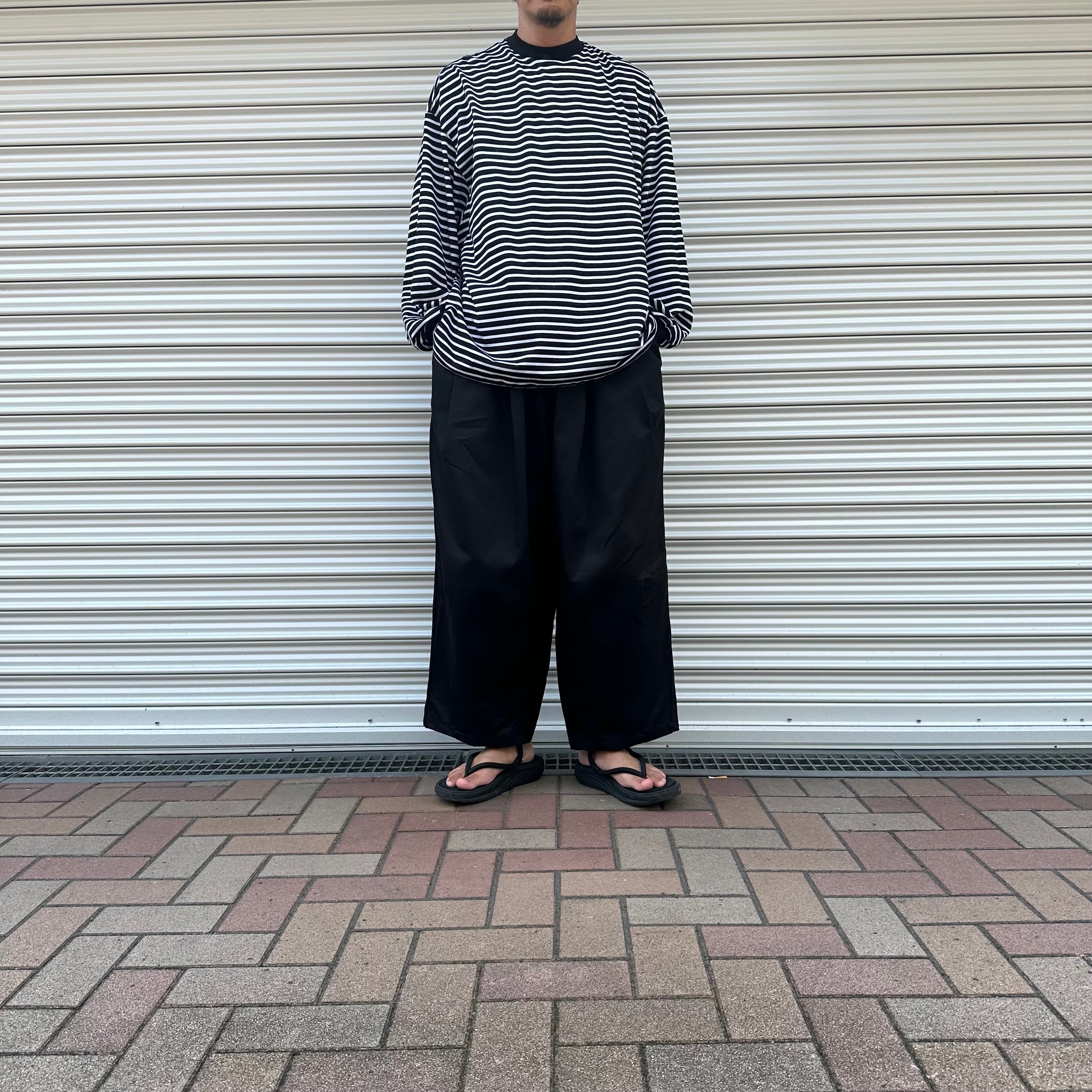 しっとりとした落ち感のあるヘビーウェイトなコットン天竺生地を使用し、裾のスピンドルを絞ることによってシルエットの変化が楽しめます。