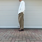ウエストにタックが入り、ボリューム感を演出、ダーツの入った裾に向けて膝下からテーパードされており、バランスの良い丈感でカットしてありますので、ボリュームがありながら、スッキリとした印象です。