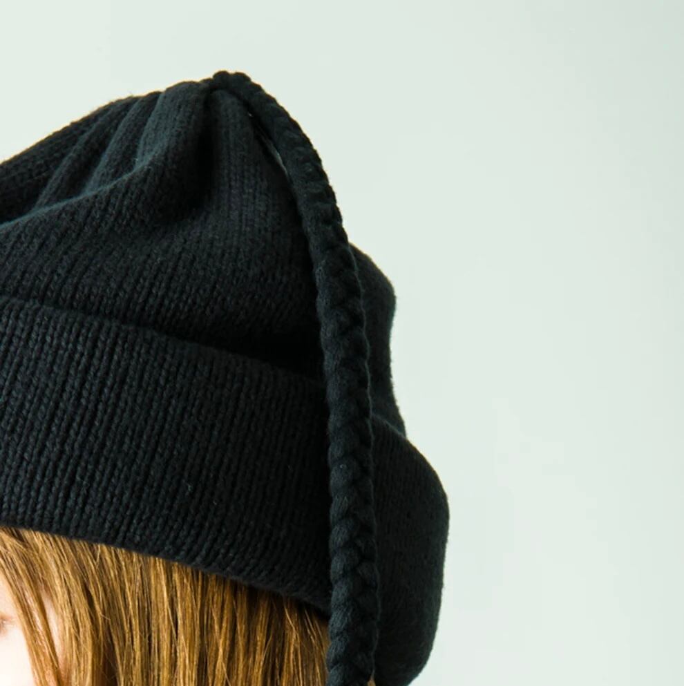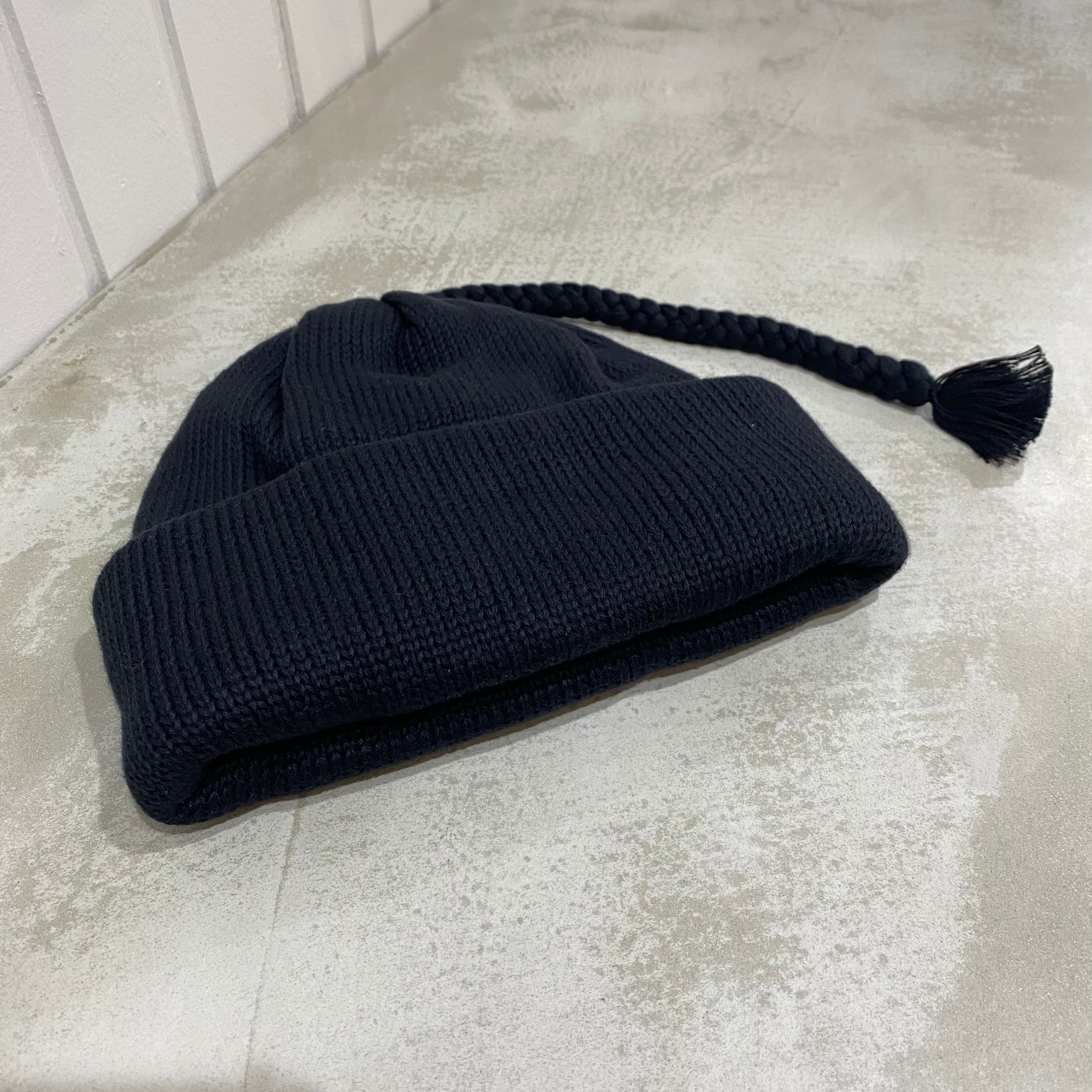 ケンドリックラマーが"DNA"のミュージックビデオでかぶっているニット帽と横から出ている三つ編みが着想源のカンフーニット。