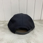 後ろアジャスターは牛革のベルト、別注塗装したシックブラックのバックルと小判ハトメを使用しています。つばの長さは約7.8cm。