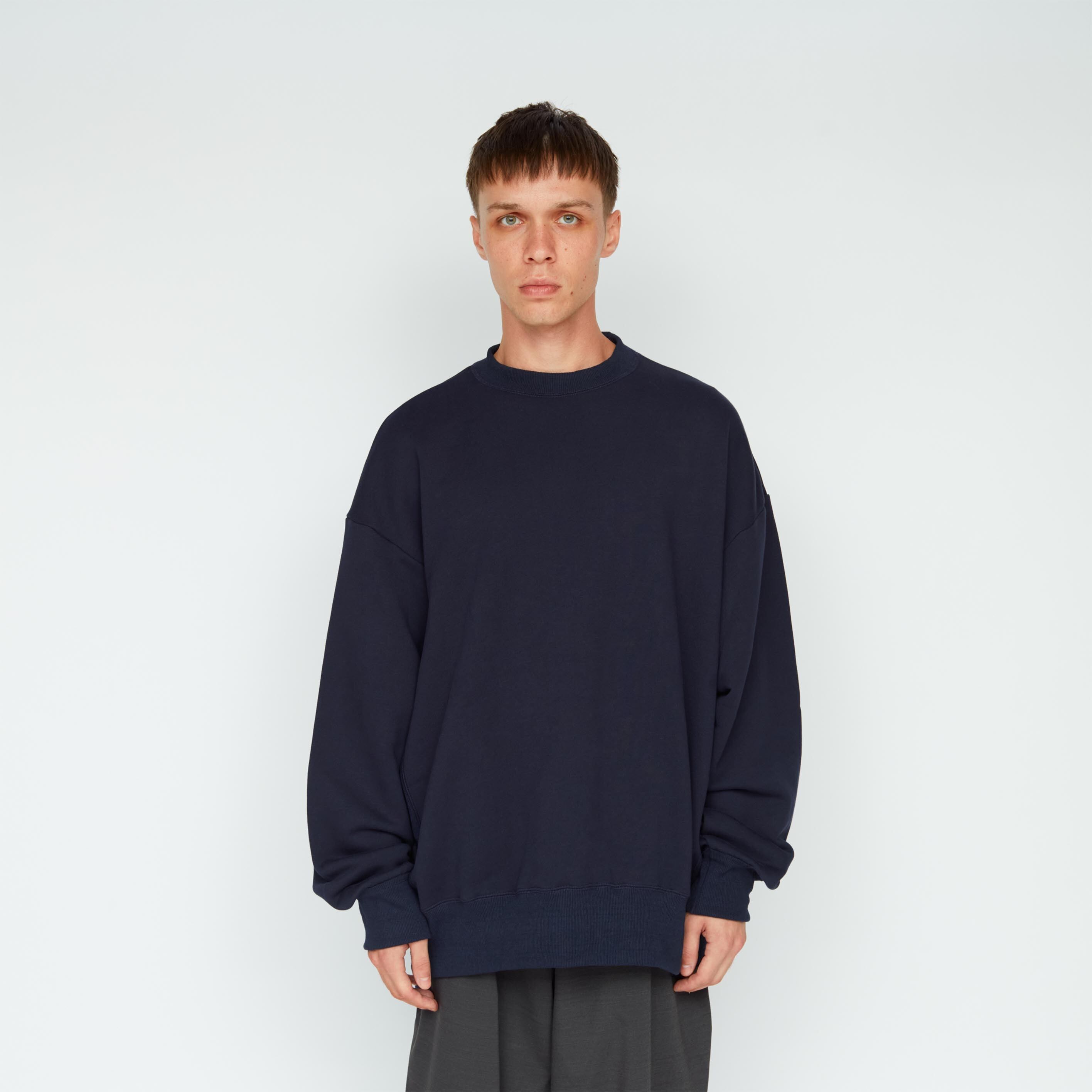太番手の糸を度詰めして編み上げた裏毛を使用したクルーネックスウェット。