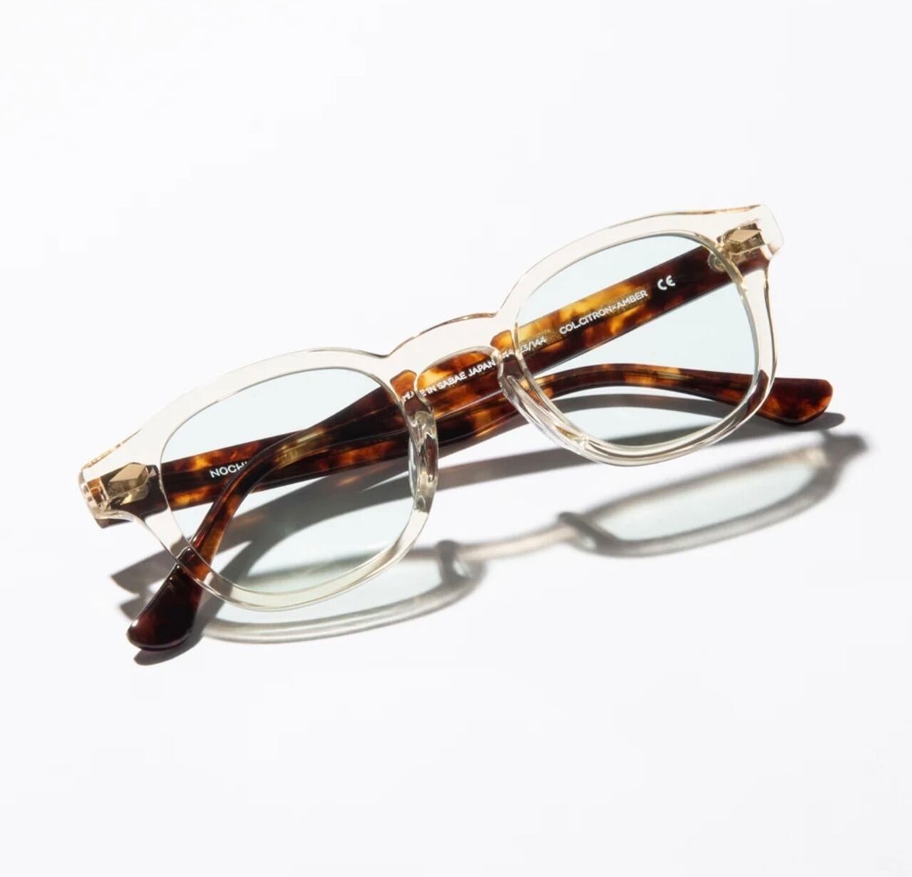 NOCHINO OPTICALブランドを象徴する2カーブレンズはフラットでもなく一般的なカーブタイプでもない美しい曲面で昔の手削りガラスレンズの名残りがあり、光り輝く表面感で高級感が漂う。