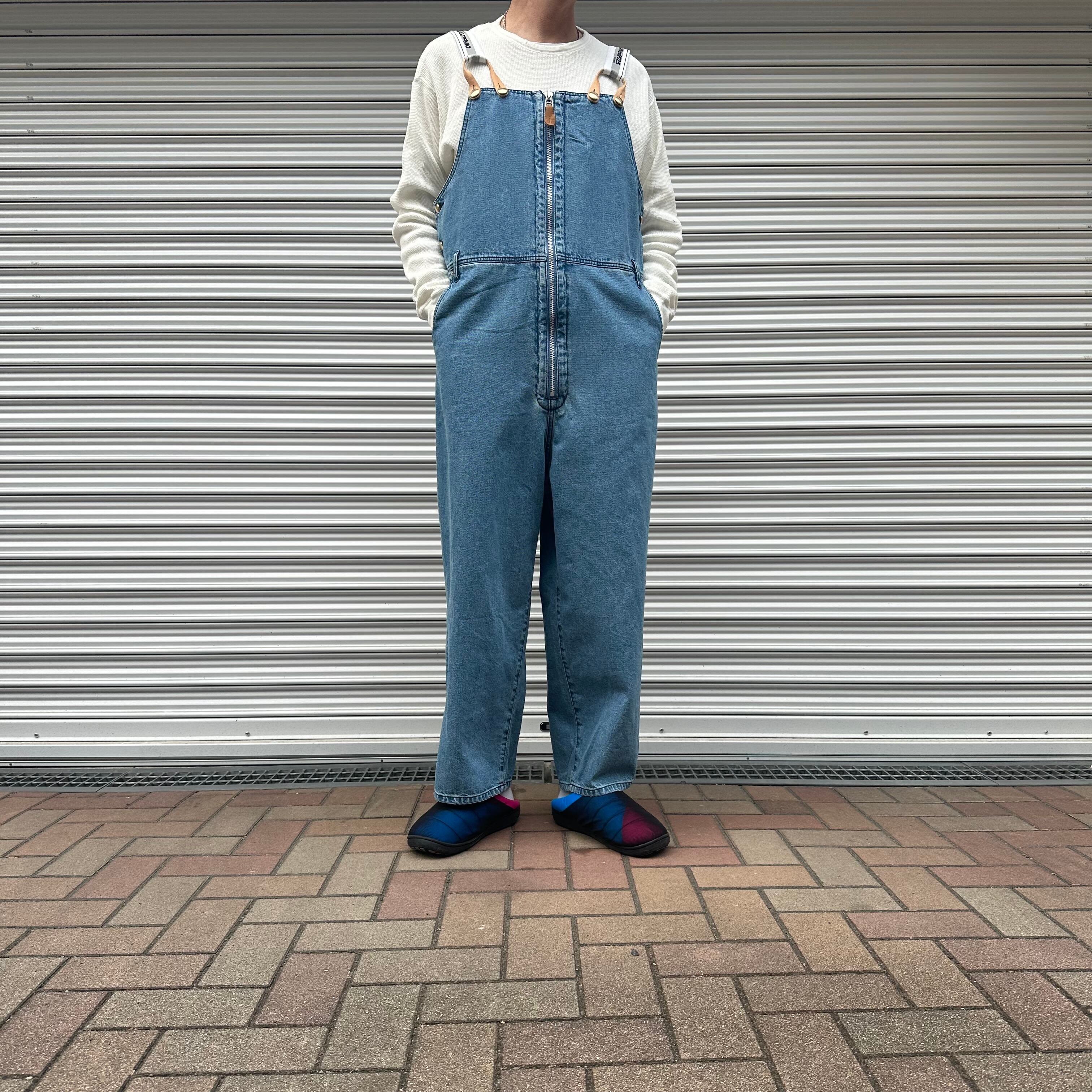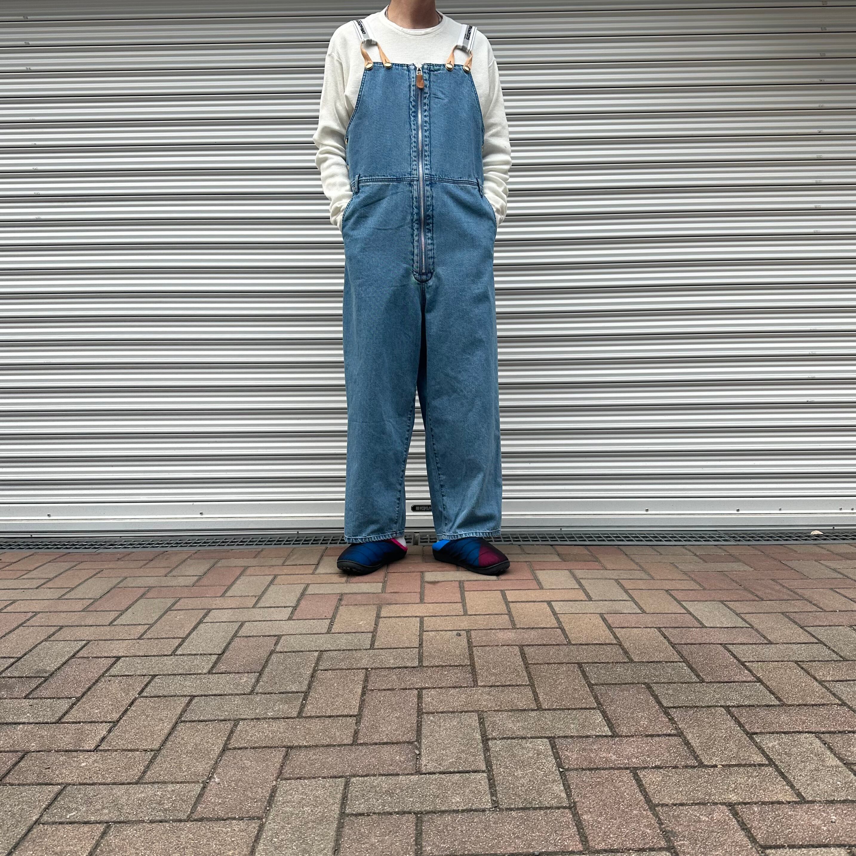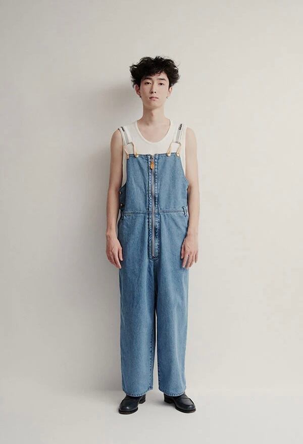 オーバーサイズのストレートシルエットのデニムオーバーオール。